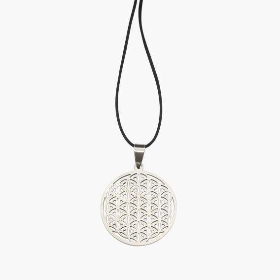 Die Blume des Lebens ist ein geometrisches Kreismuster, das seit Jahrhunderten in vielen Kulturen als heilig verehrt oder als Schutzzeichen verwendet wird. Dieses Motiv findet sich von den Tempeln des Alten Ägyptens bis zu tibetischen Klöstern. Die Blume des Lebens ist das magische Symbol der Grundlage aller Existenz, das Schöpfungsmuster in dem alles enthalten ist. Sie steht für Schutz, Ordnung und Unendlichkeit und strahlt Harmonie und Vollkommenheit der heiligen Geometrie aus. Das Ornament besteht aus einer Vielzahl von Kreisen, die einander überlappen und eine Art Blütenmuster mit 90 einzelnen Blütenblättern bilden. Umgeben wird das Muster von 3 Ringen, die sie zusammenhalten und für die Einigkeit von Körper, Seele und Geist stehen.