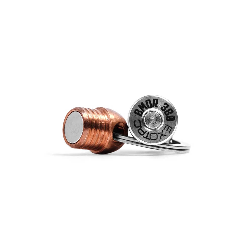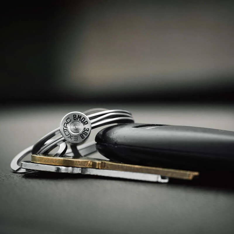 Der BMQR .380™ ist ein magnetischer Schnellverschluss für Ihren Schlüsselbund, der einem Geschoss des Kalibers .380 nachempfunden ist. Der BMQR .380™ funktioniert in Verbindung mit unserem FREEKey™ Slim System, so dass Sie Ihre Autoschlüssel schnell austauschen können, ohne den Aufwand eines herkömmlichen Schlüsselbundes. Das Gehäuse der BMQR .380™ besteht aus nicht korrodierendem Edelstahl, während das Geschoss aus Kupfer gefertigt ist. Es ist mit einer laserbeschrifteten Beschriftung versehen, die nicht abkratzt.