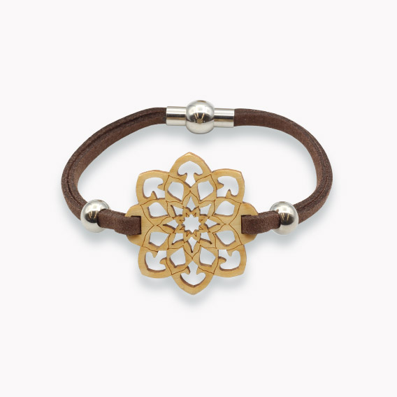 Der Umfang des Armbandes ist ca 19cm und lässt sich mittels Magnetverschluss verschließen. Das wunderschöne Holzmotiv hat einen Durchmesser von ca 36mm.