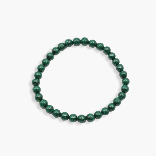 Das Armband besteht aus wundervollen geschliffenen Edelstein-Kugeln mit 6 mm Durchmesser. Die Kugeln sind auf ein elastisches Band gefädelt. Der Umfang des Malachit Armbandes ist für einen Erwachsenen bestimmt.