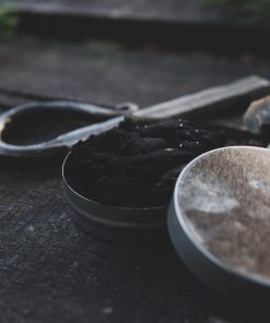 - Zunder in Form von verkohlter Baumwolle in einem kleinen Einmachglas