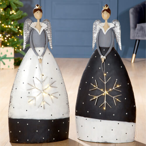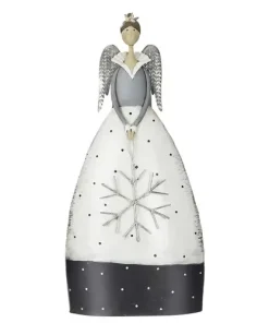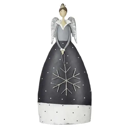 Weihnachtsdeko Metall ENGEL mit LED-Schneeflocke Casablanca H 74 cm