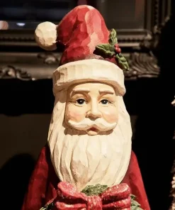 Verleihen Sie Ihrem Zuhause einen Hauch klassischer Weihnachtsatmosphäre mit dieser stilvollen Weihnachtsmannfigur. Der detailreich gestaltete Santa trägt einen prachtvollen Kranz mit roter Schleife vor seinem Bauch und überzeugt durch seine liebevoll ausgearbeiteten Gesichtszüge, weißen Bart sowie den traditionellen roten Mantel mit weißem Saum. Schwarze Stiefel und Handschuhe runden sein festliches Erscheinungsbild ab.