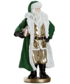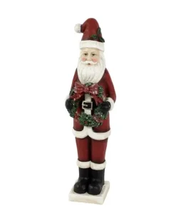 Verleihen Sie Ihrem Zuhause einen Hauch klassischer Weihnachtsatmosphäre mit dieser stilvollen Weihnachtsmannfigur. Der detailreich gestaltete Santa trägt einen prachtvollen Kranz mit roter Schleife vor seinem Bauch und überzeugt durch seine liebevoll ausgearbeiteten Gesichtszüge, weißen Bart sowie den traditionellen roten Mantel mit weißem Saum. Schwarze Stiefel und Handschuhe runden sein festliches Erscheinungsbild ab.